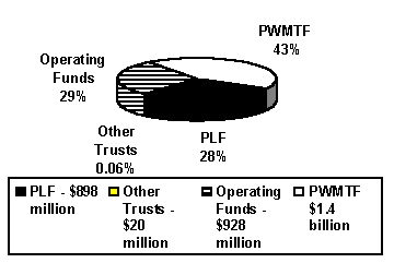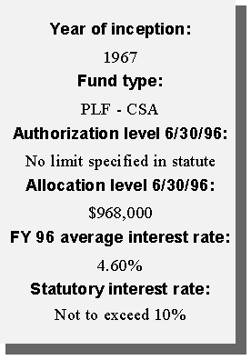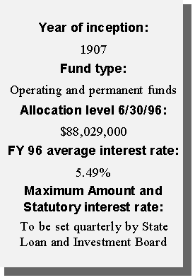 The Permanent Land Fund (PLF) is used to account for the lands received under the Act of Admission, which were designated specifically for the state's educational system and other public institutions. Income from mineral royalties on and sales of these lands is returned to the corpus, while income from rentals, fees, and interest earnings is deposited either in the Permanent Land Income Fund or the General Fund. At the end of FY 96, the PLF amounted to more than $898 million, 93 percent of which is within the Common School Account (CSA). One LDI is authorized from the University Account within the PLF, and three others involve funds from the CSA within the PLF.Operating Funds.