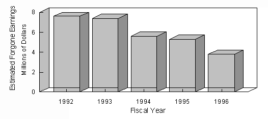 Funds allocated to LDIs resulted in forgone earnings as high as $6.25 million per year. This estimate was arrived at by comparing allocated LDI funds to other invested state funds over the past five fiscal years. Since farm loans constitute such a large portion of allocated LDI funds and since they currently perform above market, forgone earnings would be even greater if farm loans were excluded from the analysis.