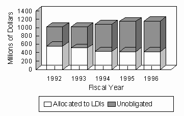 This report uses certain terms to describe the status of funds associated with LDIs. For most LDIs, statutes or session laws authorize a specific amount of money to be used in connection with a program or project. Within the amount authorized, funds may be deployed in several ways. The portion of funds that an LDI program or project puts to active use is called allocated funds. Some authorized funds may not be actively at work for the program or project, and these are called unobligated funds. Finally, in those programs involving bond guarantees, some or all of the funds may be committed to stand behind the LDIs, while other funds are uncommitted, or not yet required for a guarantee.