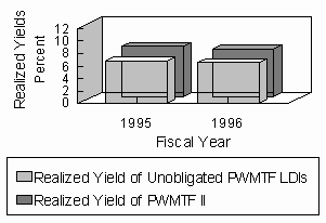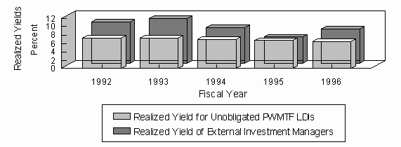 Since the accounting and investing of state funds is not compatible with tracking each dollar, its fund of origin, and its investment vehicle, we estimated the yield for the funds authorized, but not allocated, for LDIs. Since nearly the entire impact from unobligated LDI funds is limited to those originating from the PWMTF, our analysis targets just this portion of LDIs. To determine the realized yield on the unobligated funds within the PWMTF, a weighted process using the unobligated funds in the PWMTF not invested elsewhere is weighted with the PWMTF invested within the Agency Pool. The appropriate yields are then applied to each weight. This method only results in a "best approximation" since the rate of the PWMTF includes the performance of LDIs themselves. Therefore, this method tends to slightly underestimate the rate actually earned.