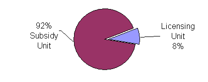 The licensing unit, together with the childcare subsidy function, is funded by the CCDF. One staff member in the subsidy function administers a federal reimbursement program, under which low-income parents can qualify for subsidies to defray the costs of childcare.